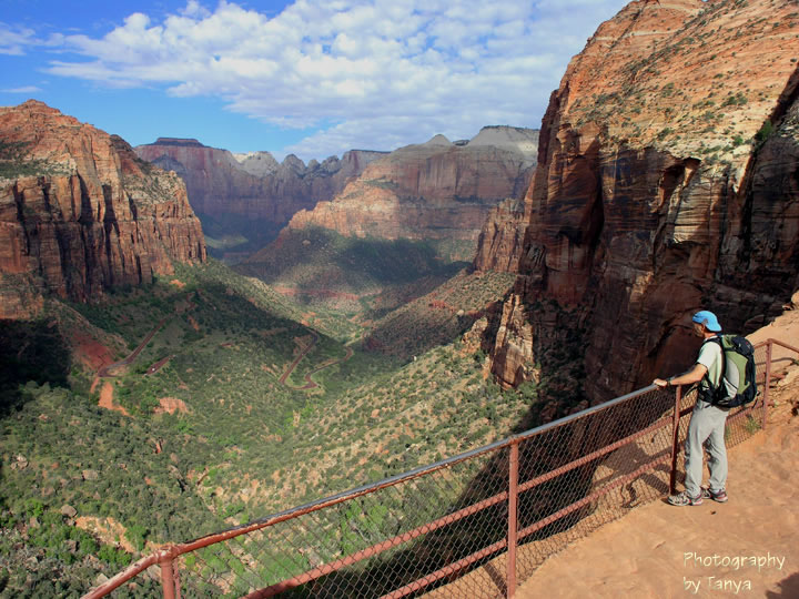 Canyon Overlook View Point - Lower Zion Canyon - Switchbacks, Streaked Wall, West Temple and other well known Zion Landmarks.