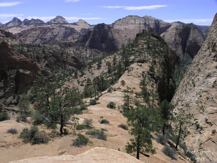 The head of Shelf Canyon. The slot to the right is Shelf Canyon which begins by the Zion-Mt. Carmel Highway.